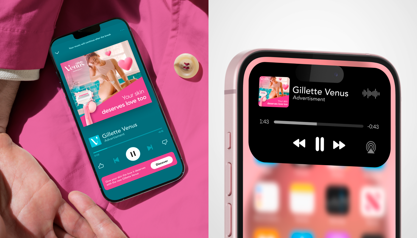 On Spotify, we translated Venus into a soft, sensory self-care moment—designed to feel like part of the listener’s routine, not an interruption. Calm visuals, gentle UI details, and an audio-led tone positioned ComfortGlide Miami as a ritual companion focused on softness, care, and everyday confidence. The experience blends seamlessly into personal listening time, making the brand feel intimate, natural, and emotionally relevant.