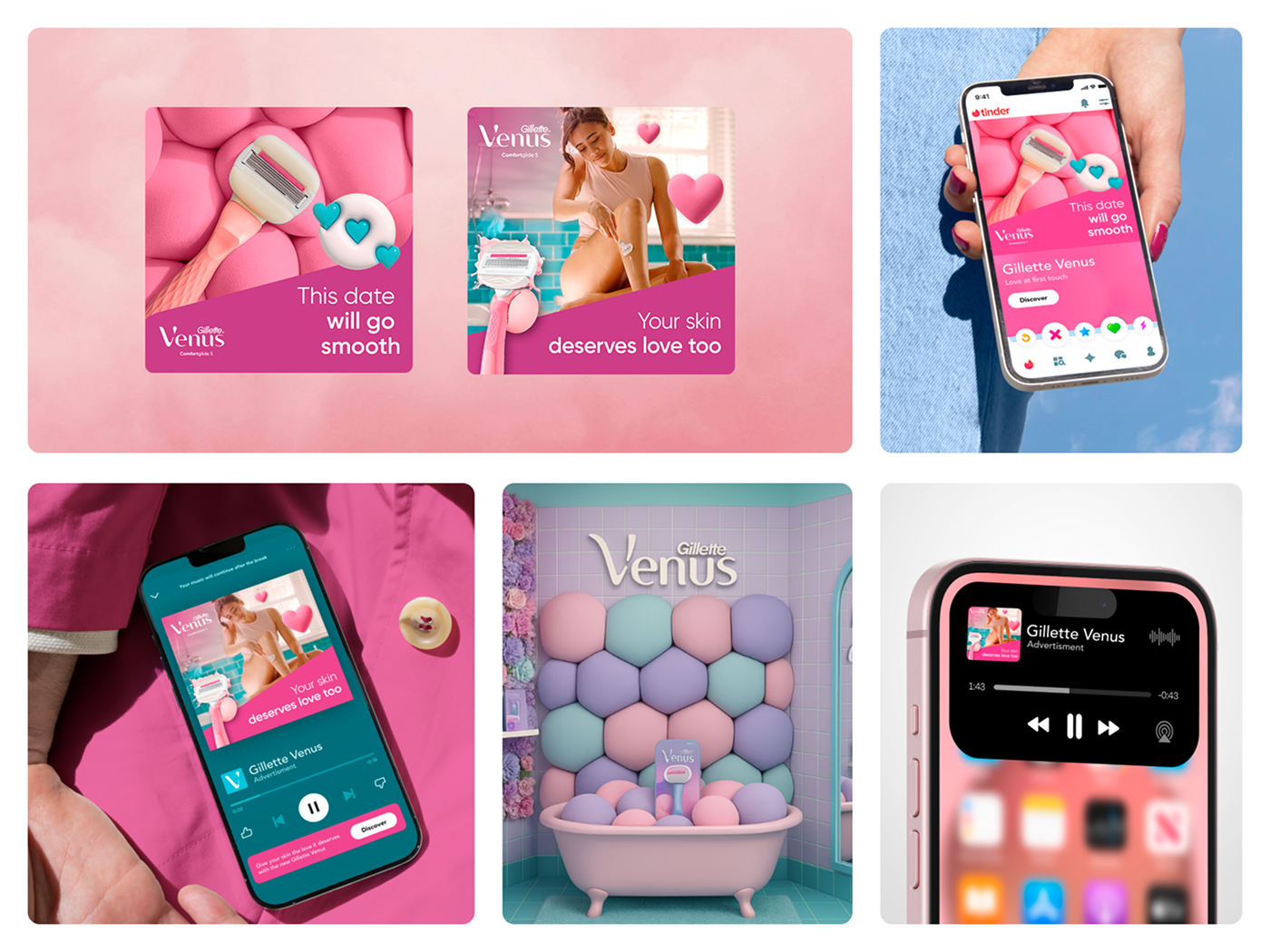 Venus repositions the ComfortGlide Miami razor as a self-care ritual rather than just a functional product. The campaign focuses on softness, emotion, and everyday confidence, embedding the brand into platform-native experiences on Spotify and Tinder. By showing up quietly and intentionally, Venus becomes part of moments women already create for themselves.
