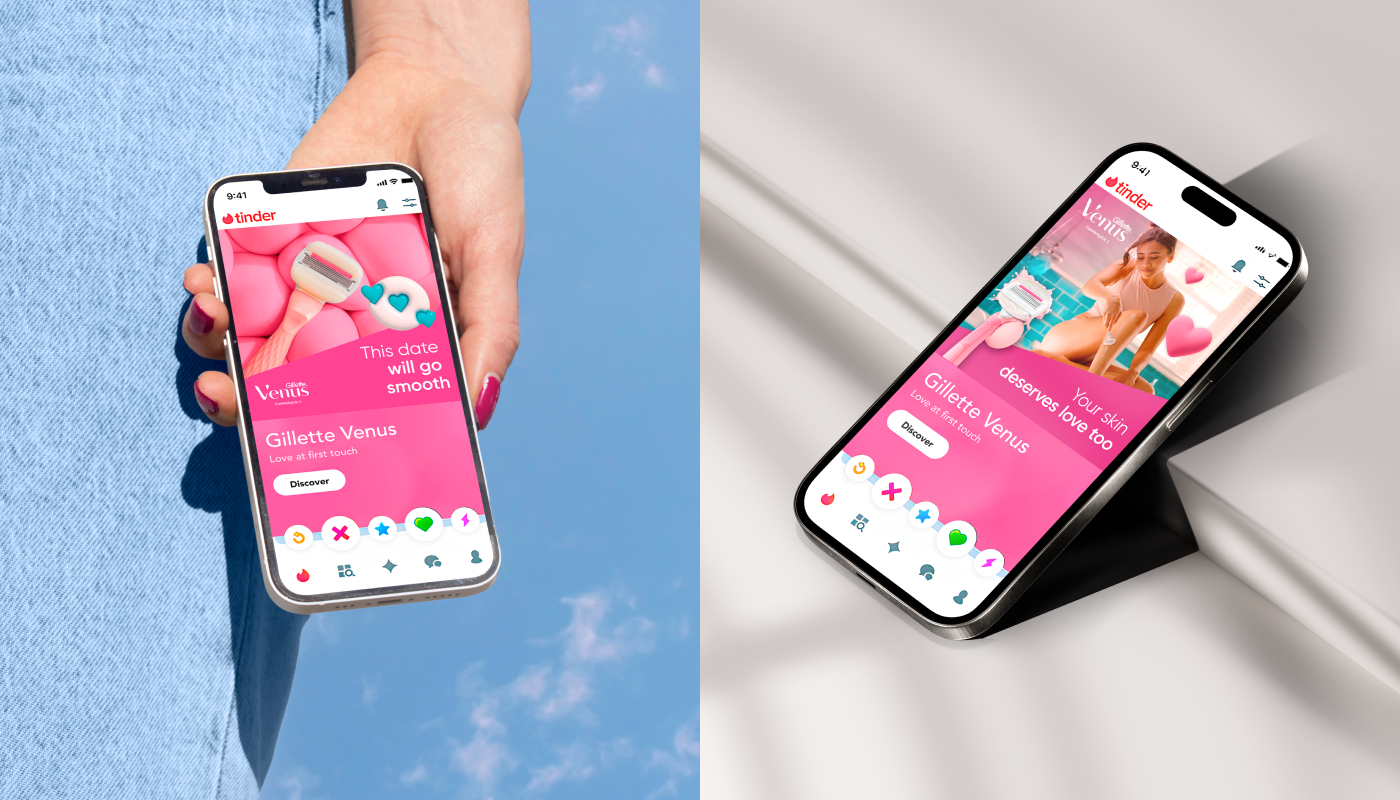 On Tinder, we took a more playful and confident approach, reimagining Venus as the perfect match. Using cheeky copy, swipe-inspired visuals, and platform-native interactions, the campaign fit naturally into the dating mindset—highlighting confidence, smoothness, and self-love without feeling like an ad.